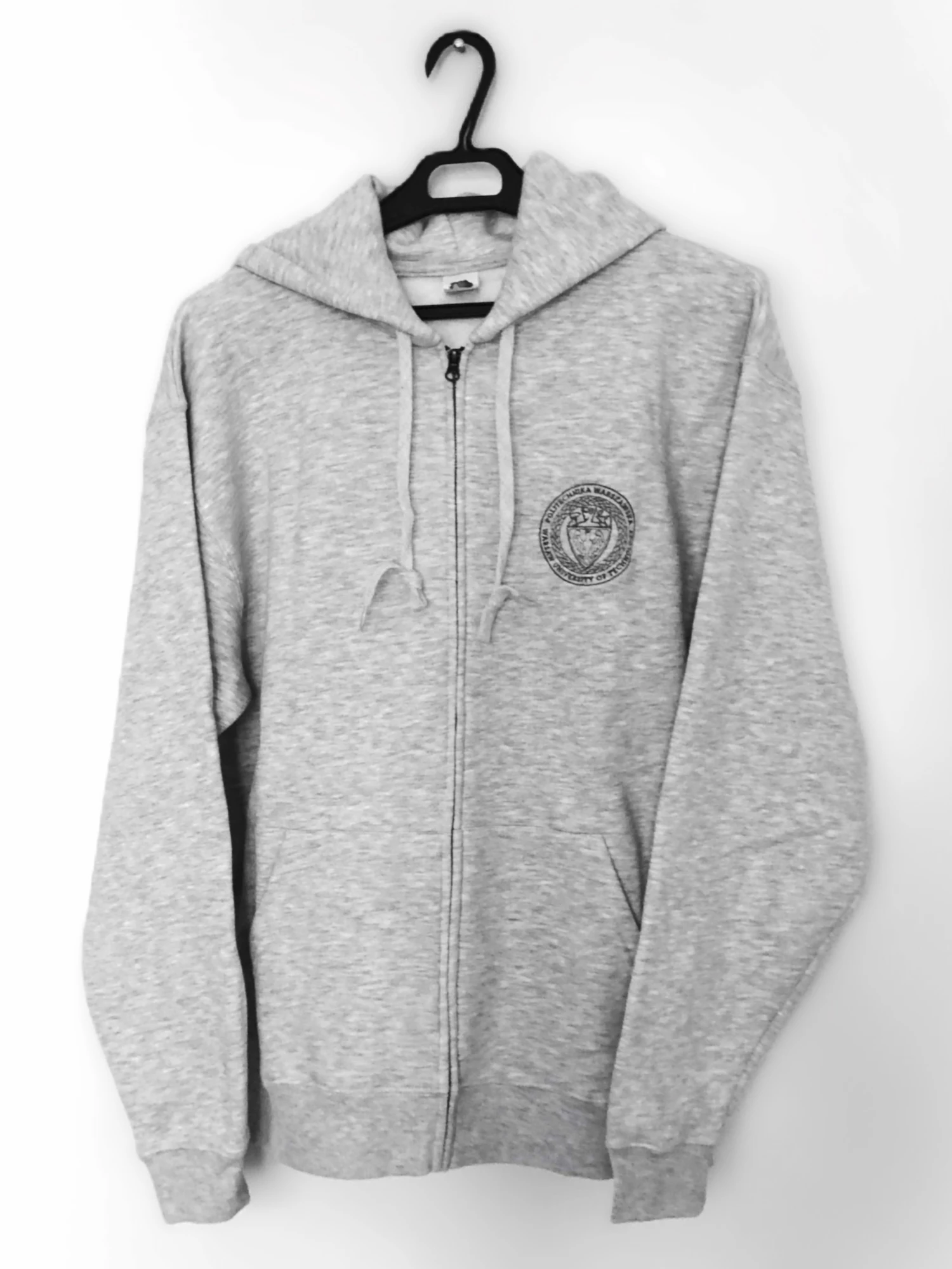 Rozpinana na suwak bluza z dwuwarstwowym kapturem w kolorach czarnym, oliwkowym i szarym (melanż) z haftowanym logo PW.